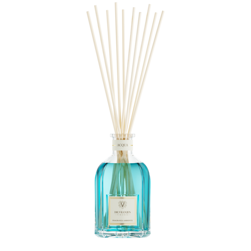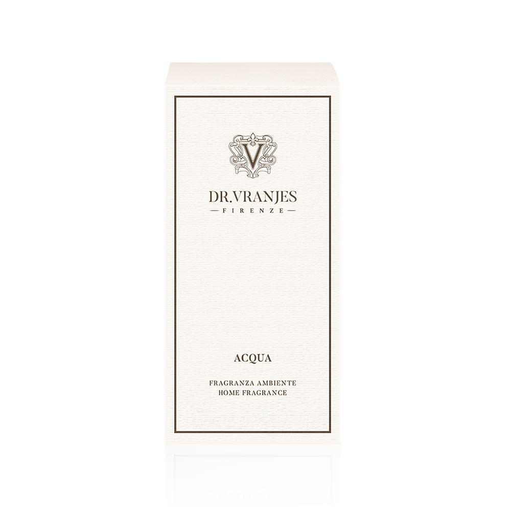 Difuzor Acqua ima nežno morsko dušo. Naj vas njegova svežina popelje v harmonijo, zahvaljujoč zgornjim notam bazilike, morskim valovom v srcu in belemu mošusu v osnovi, ki dopolni vohalno izkušnjo.