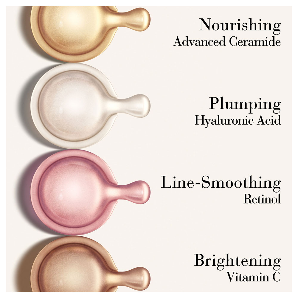 Najnovejša inovacija – Serum za polnjenje kože s hialuronsko kislino in ceramidi v kapsulah. Hidratizira z Double-Lock Hydration System™ za vidno bolj polno, čvrsto in bolj navlaženo kožo. Svilnato lahek serum, ki združuje dve bistveni sestavini mladosti v kapsulnem pakiranju: hialuronska kislina hidrira, ceramidi pa krepijo in ščitijo kožo ter podaljšujejo učinek hidratacije. Formuliran za maksimalno učinkovitost in zaščiten v kapsuli.