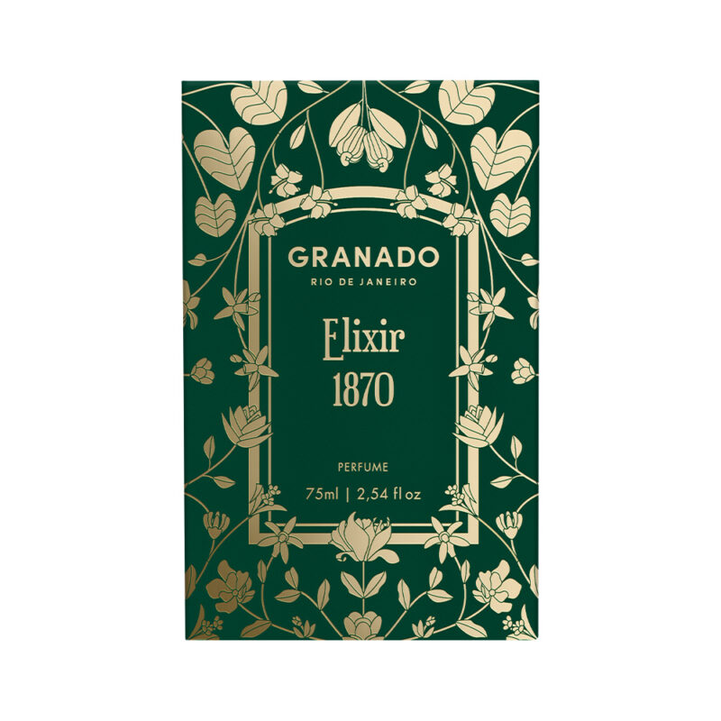 Elixir 1870 je sodobna in živahna stvaritev, ki obuja stoletno brazilsko tradicijo, eleganco in pobeg v naravo. Citrusne, aromatične in lesne note nas popeljejo v gore Rio de Janeira, kjer je José Antônio Coxito Granado, ustanovitelj blagovne znamke, gojil zelišča in rože, uporabljene v formulah izdelkov.